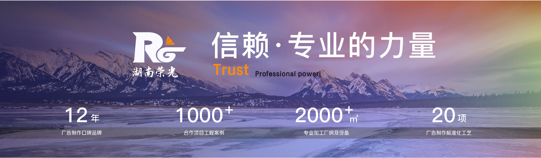 走進(jìn)湖南榮光About Us湖南榮光公司是一家總部位于長沙的廣告公司,公司現(xiàn)有管理團(tuán)隊技術(shù)骨干20余人,擁有專業(yè)的安裝隊伍及售前售后團(tuán)隊、資深的文化墻設(shè)計、黨建文化設(shè)計和廣告標(biāo)識設(shè)計團(tuán)隊。現(xiàn)有廣告標(biāo)識及發(fā)光字加工生產(chǎn)廠房2200平米,150平米標(biāo)準(zhǔn)化烤漆加工房。全自動發(fā)光字折彎機、雕刻機、激光切割機、平板UV設(shè)備等十余臺。同時具有強大的LED顯示屏供應(yīng)鏈、為您企業(yè)的廣告投入,實現(xiàn)創(chuàng)新和快速反應(yīng),提供了有力保障。